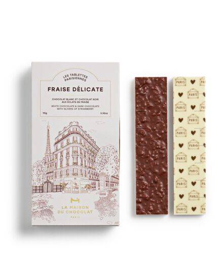Delicate Strawberry Bar - Corporate Gifts56% dark chocolate with dried strawberries and white chocolate.