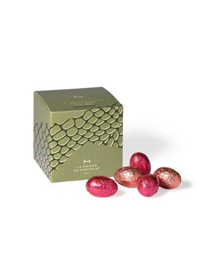 Milk Chocolate Praline Eggs Treats Case - Corporate GiftsTwo milk chocolate praline eggs: smooth hazelnut praline and crunchy gianduja biscuit.