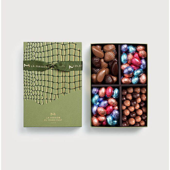At La Maison du Chocolat, each composition is adjusted by hand. The pieces in the Craquant Easter Chocolates Gift Box are selected and boxed one by one, with the same precision, to preserve the balance of textures and flavours. The box colours follow Maison codes. The scale-textured paper wraps the set, protects the chocolate and extends the enjoyment. A considered gift, ready to share at group moments.