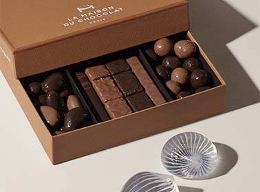 For an optimal experience, enjoy our chocolates at room temperature, ideally around 20°C. Pair them with mineral water to fully reveal the richness of their aromas. Store your chocolates in a cool, dry place (around 18°C), away from light, in their original packaging. If you need to place them in the lower part of the refrigerator, protect the box in a paper or plastic bag. Remember to take them out 30 minutes before tasting so they can regain all their finesse.