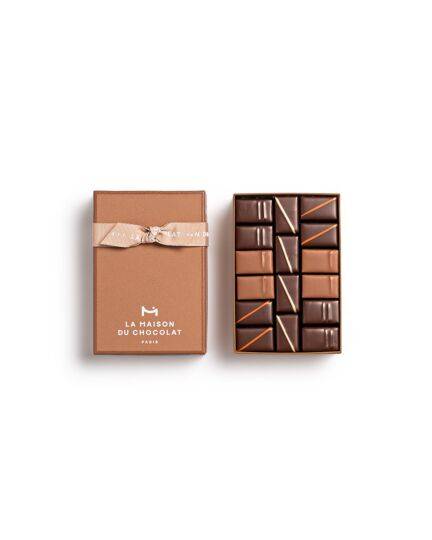 Coffret Gourmandises 20 chocolats - Cadeaux d’AffairesAssortiment de pralinés moussés aux textures diverses : coco, pécan, biscuit, dentelle.
