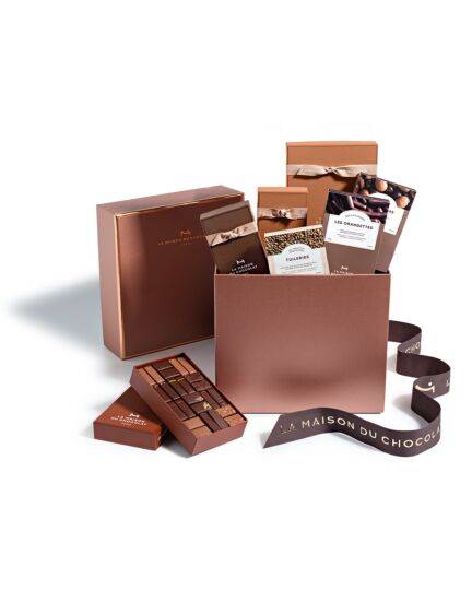 Boite Cadeau Tuileries - Cadeaux d’AffairesAssortiment de 7 coffrets de chocolats dans une boîte cadeau élégante.