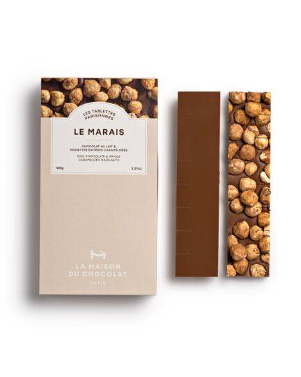 Tablette de Chocolat le Marais - Cadeaux d’AffairesChocolat au lait onctueux avec des noisettes délicatement caramélisées.