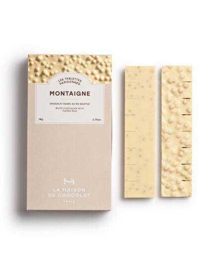 Tablette de Chocolat Montaigne - Cadeaux d’AffairesChocolat blanc à la vanille et au riz soufflé pour une texture croustillante.