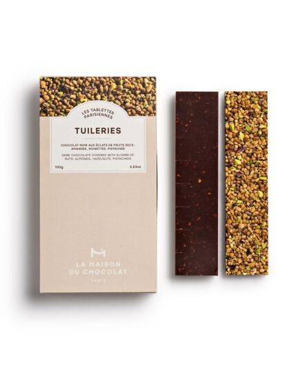 Tablette de Chocolat Tuileries Cadeaux d'affairesChocolat noir parsemé d’éclats d’amandes, pistaches et noisettes grillées.