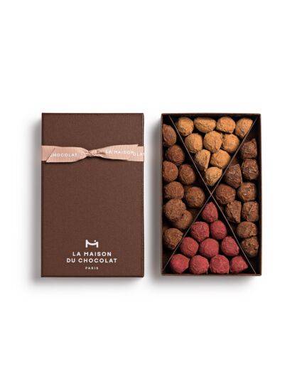 Nos truffes incarnent l’intensité du cacao dans sa forme la plus noble. Élaborées avec précision, elles offrent une texture fondante et une profondeur aromatique remarquable. Ces créations emblématiques sont parfaites pour les entreprises en quête d’un cadeau à forte valeur émotionnelle. Disponibles en coffrets de différents formats, elles peuvent être personnalisées avec un message ou un habillage à votre image. Les truffes de La Maison du Chocolat sont façonnées à la main, dans le respect des traditions artisanales françaises. Découvrez également nos pralinés, nos ganaches et nos coffrets message pour varier vos attentions. Offrir une truffe, c’est transmettre une émotion, marquer une relation et affirmer un goût pour l’excellence.