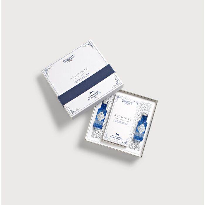 Vous avez aimé la TABLETTE ALCHIMIE GIN, retrouvez là dans une version coffret dégustation. En confiant à Nicolas Cloiseau les botaniques des 19 aromates qui infusent leur Gin, Citadelle, pionnier du Gin Français, découvre une nouvelle façon de capturer le caractère de chaque baie, de chaque épice et de chaque agrume qui infusent son Gin dans une tablette et marquent le chocolat pure origine de l’île de Grenade d’un goût intense de Gin, sans Gin et sans alcool (traces 0,5%). Le COFFRET ALCHIMIE GIN, vous emmène plus loin dans l’expérience, il réunit une tablette Gin chocolat et deux mignonettes de Gin Citadelle, pour parfaire la dégustation. L’ABUS D’ALCOOL EST DANGEREUX POUR LA SANTÉ, À CONSOMMER AVEC MODÉRATION.