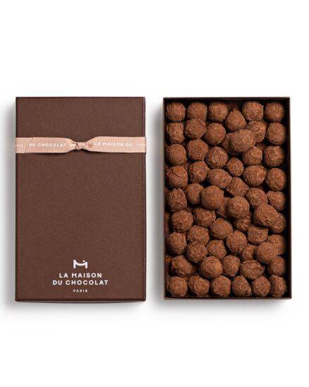 Le Coffret Craquant réunit tout ce que les palais exigeants attendent d’un cadeau d’affaires gourmand : des rochers pralinés au chocolat noir ou au lait, des noisettes et amandes entières enrobées, et des bâtonnets praliné aux éclats de biscuit ou rocher croustillant. Chaque bouchée révèle un cœur fondant ou croquant, sublimé par des fruits secs rigoureusement sélectionnés et caramélisés. Façonné avec soin par les artisans de La Maison du Chocolat, ce coffret incarne la générosité et le raffinement. Personnalisable avec un fourreau, une étiquette ou des chocolats siglés, il devient une attention professionnelle sur mesure, idéale pour remercier, célébrer ou fidéliser.