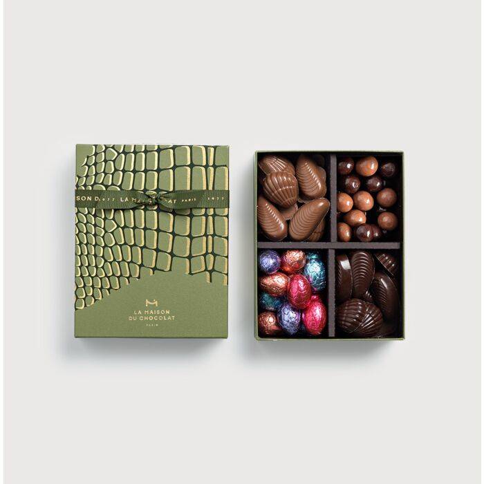 A La Maison du Chocolat, chaque composition est ajustée à la main. Les pièces du Coffret Craquant de Pâques sont sélectionnées et mises en coffret une à une, avec la même précision, pour respecter l’équilibre des textures et des goûts. Les tons du coffret reprennent les codes Maison. Le papier au toucher évoquant des écailles habille l’ensemble, protège le chocolat et prolonge le plaisir. Un objet d’attention, prêt à offrir pour vos moments collectifs.