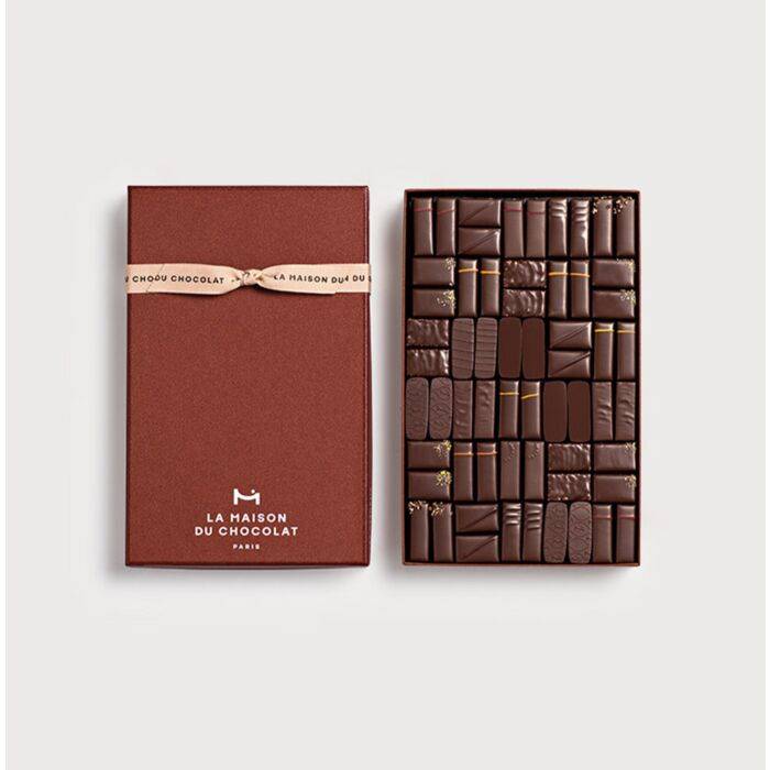 Offrir ce coffret emblématique de La Maison du Chocolat, c’est choisir un cadeau d’affaires d’exception. Composé de 60 chocolats noirs, il célèbre l’art de la ganache et du praliné dans une partition gourmande et élégante, pensée pour les amateurs gourmands et les professionnels exigeants. Les ganaches, aux textures soyeuses, dévoilent des arômes subtils, parfois infusés, parfois fruités, toujours parfaitement équilibrés. Les pralinés, quant à eux, jouent sur les textures et les contrastes : éclats d’amandes, noisettes torréfiées, crêpes dentelle ou cristaux de sel, dans des recettes lisses ou croustillantes. Chaque détail reflète un artisanat d’excellence et des ingrédients rigoureusement sélectionnés. Ce coffret personnalisable, avec un fourreau ou une étiquette ou des chocolats siglés est idéal pour remercier un collaborateur, fidéliser un client ou marquer un événement d’entreprise.