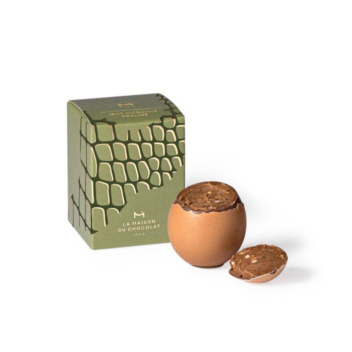 Sous une véritable coquille d’œuf, une fine couche de chocolat lait renferme un praliné amandes et noisettes au caramel cuit, aux éclats de noisette. Un écrin individuel idéale pour les cadeaux de bienvenue ou dotation individuelle.